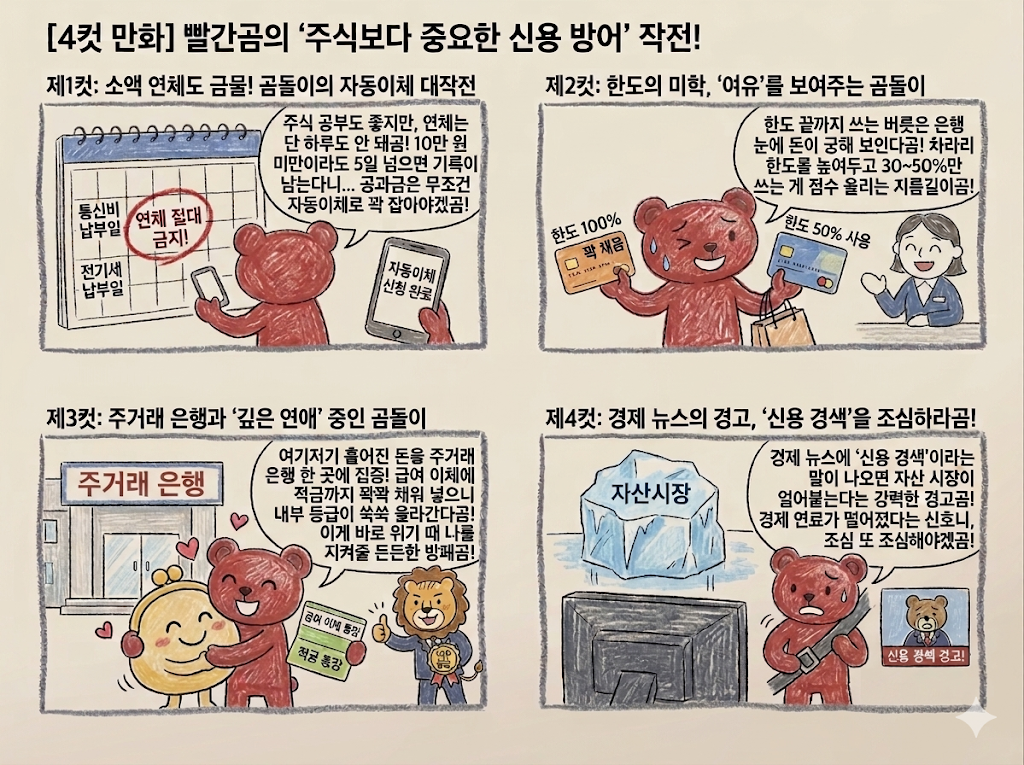 - 연체는 단 하루도 금물: 10만 원 미만 소액이라도 5일 이상 연체되면 기록이 공유됩니다. 공과금 등은 반드시 자동이체를 활용하세요.